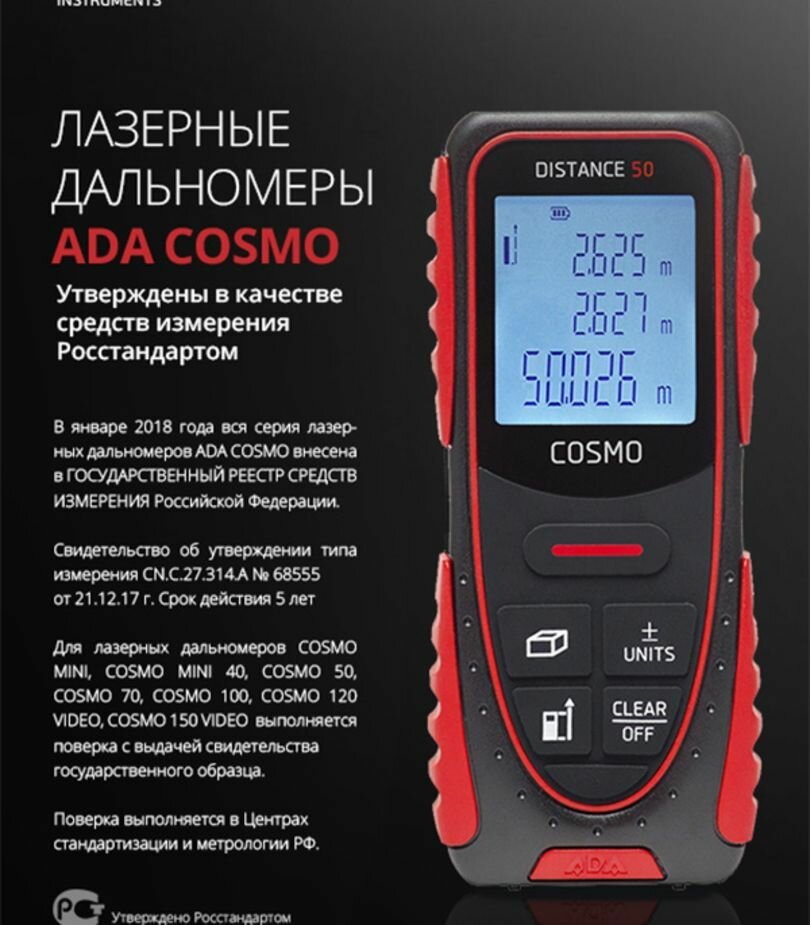 Измеритель длины лазерный ADA Cosmo 50 с поверкой