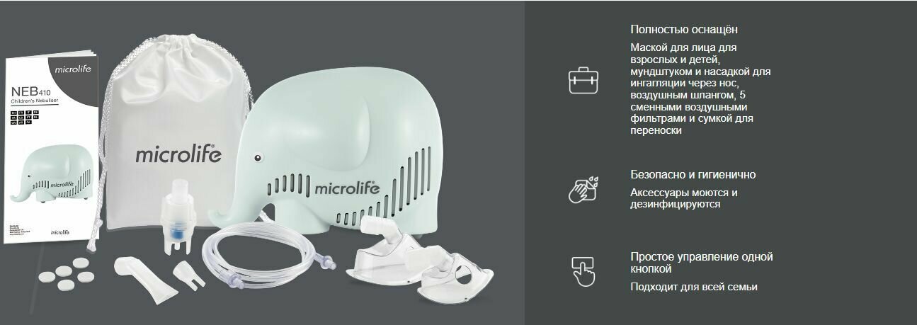 Ингалятор небулайзер компрессорный для детей и взрослых Microlife NEB 410, семейный интересное: