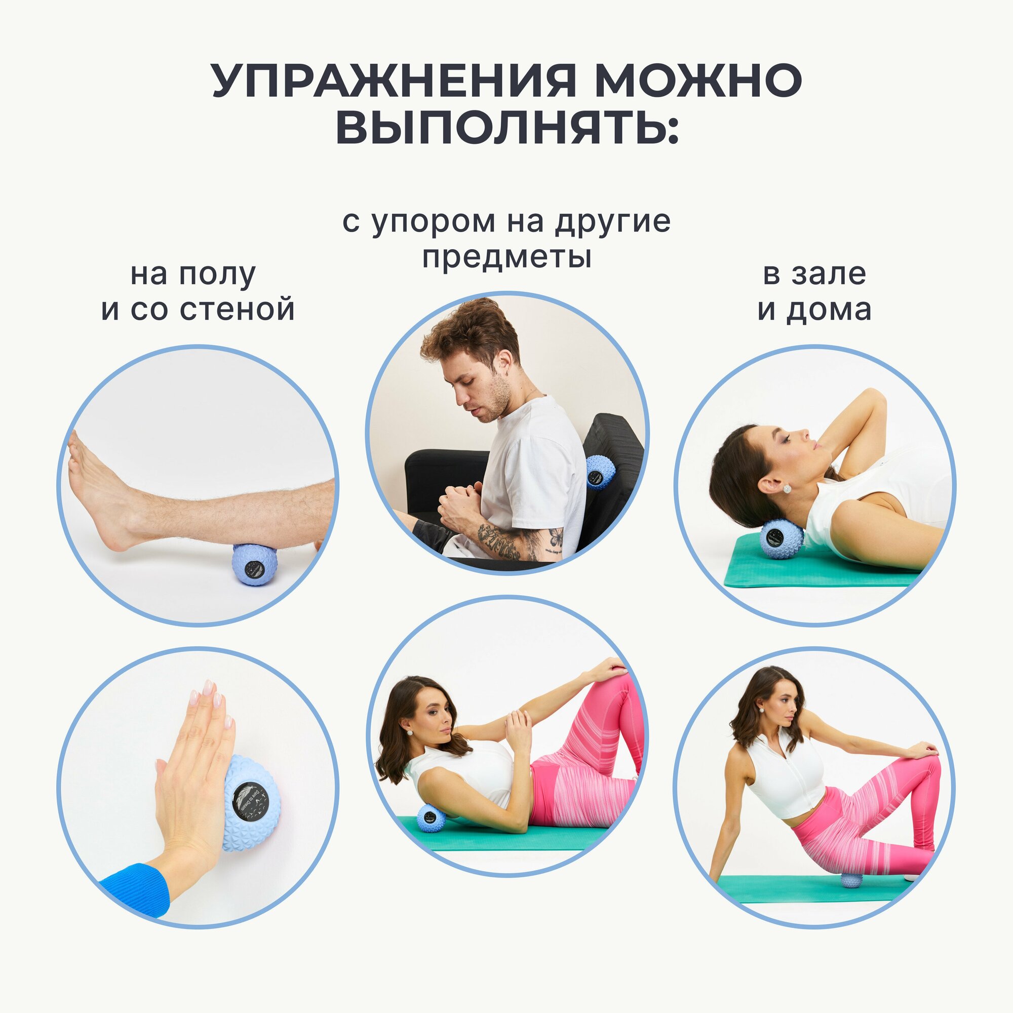 Мячик массажный двойной для йоги, пилатеса и МФР, голубой, ролик массажный, мяч для МФР, валик для спины интересное: