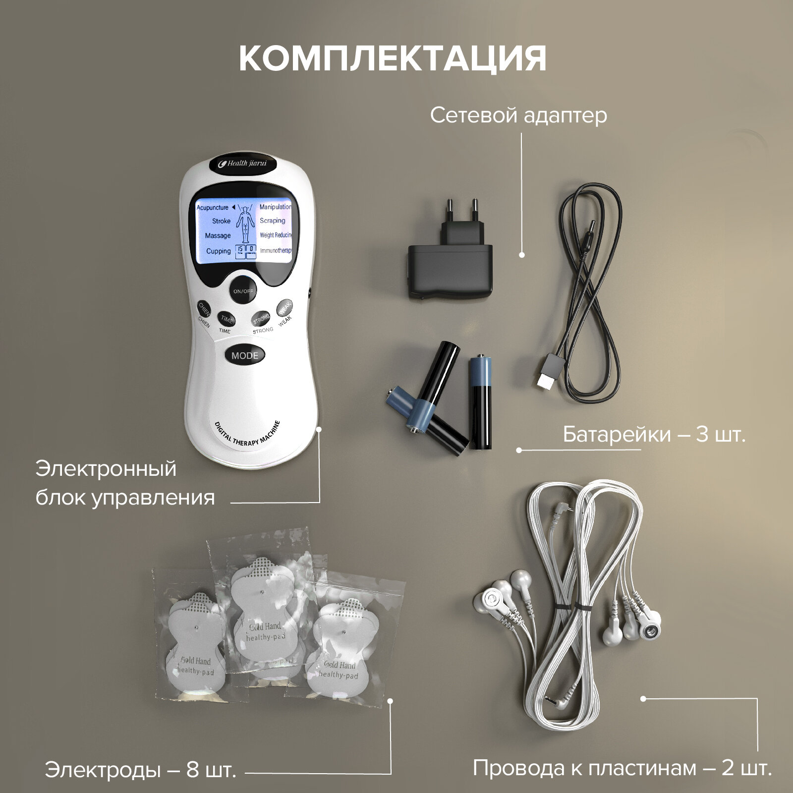Импульсный миостимулятор Evo Sante массажер для тела, тренажер для мышц, оздоровление, физиотерапия, 8 электродов в комплекте