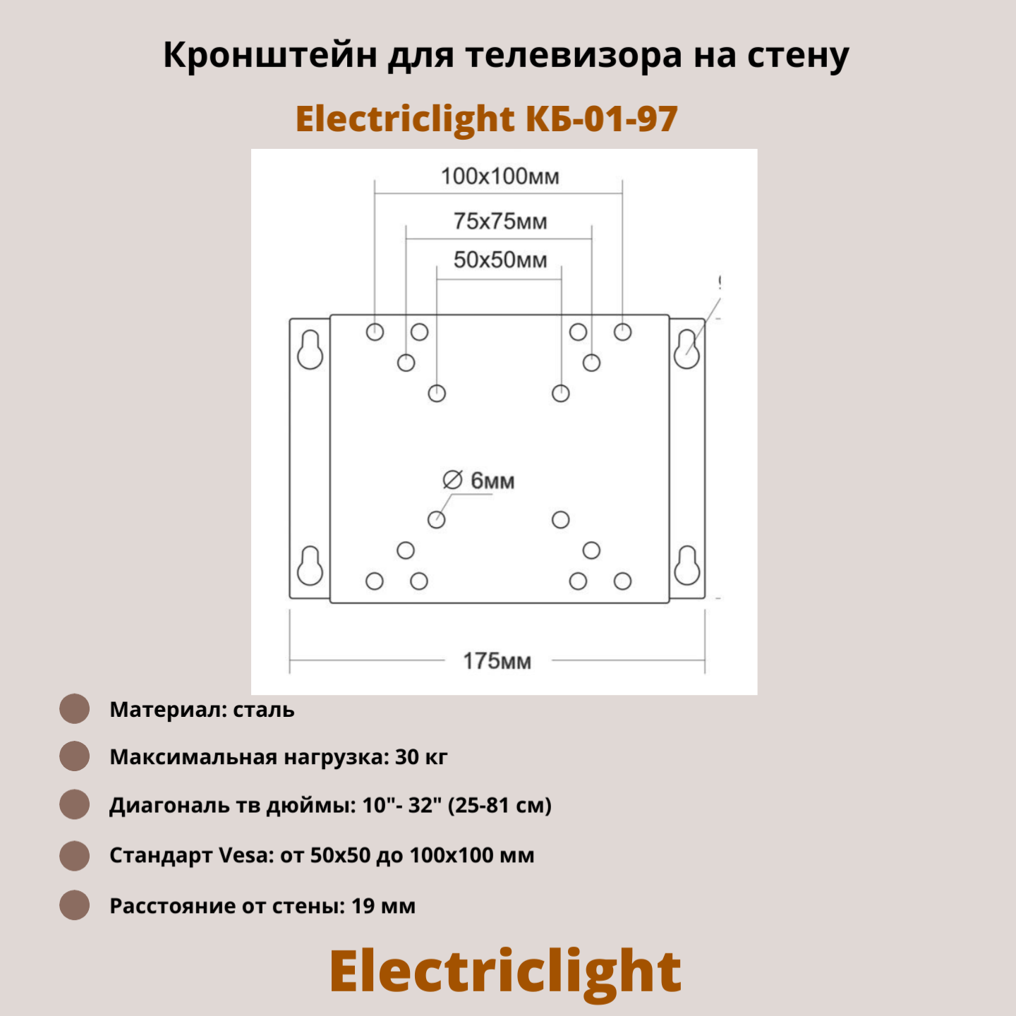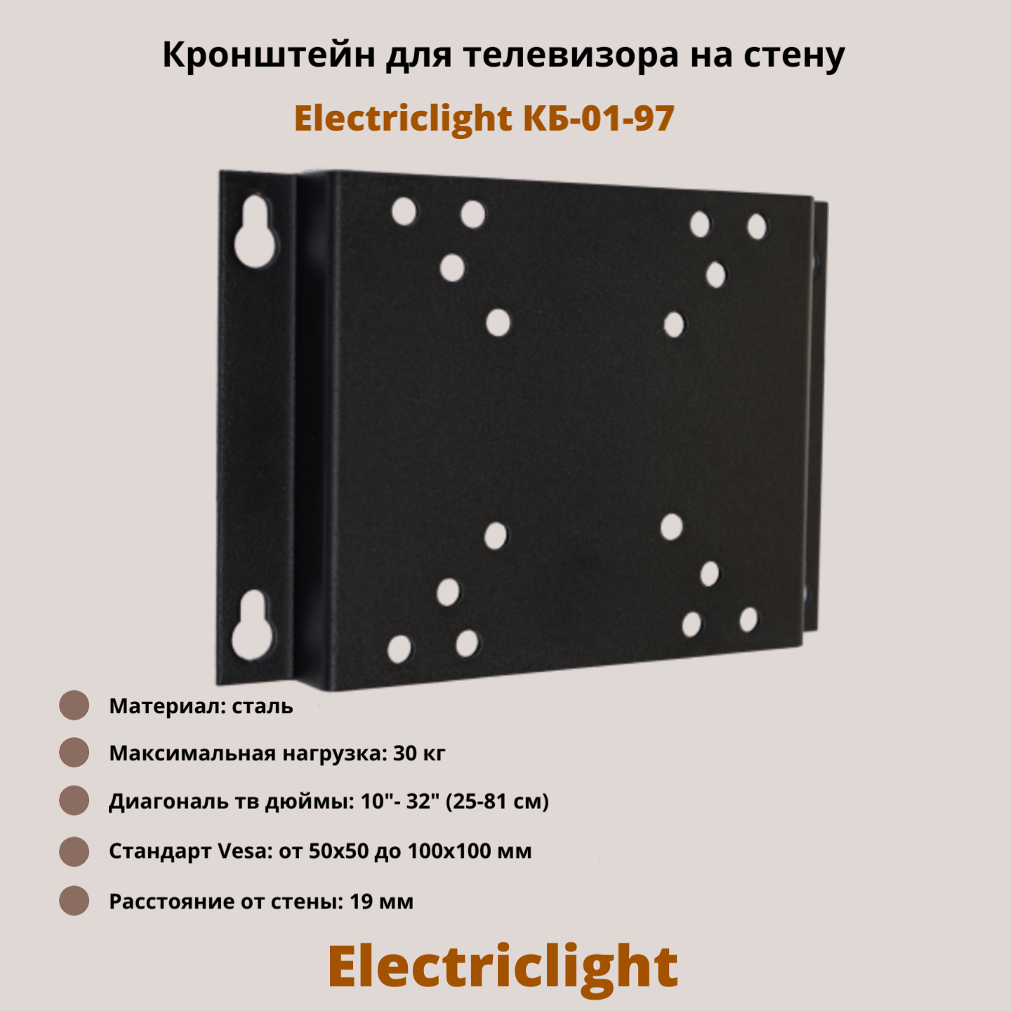 Кронштейн для телевизора на стену фиксированный с диагональю 10"-32" Electriclight КБ-01-97,черный интересное: