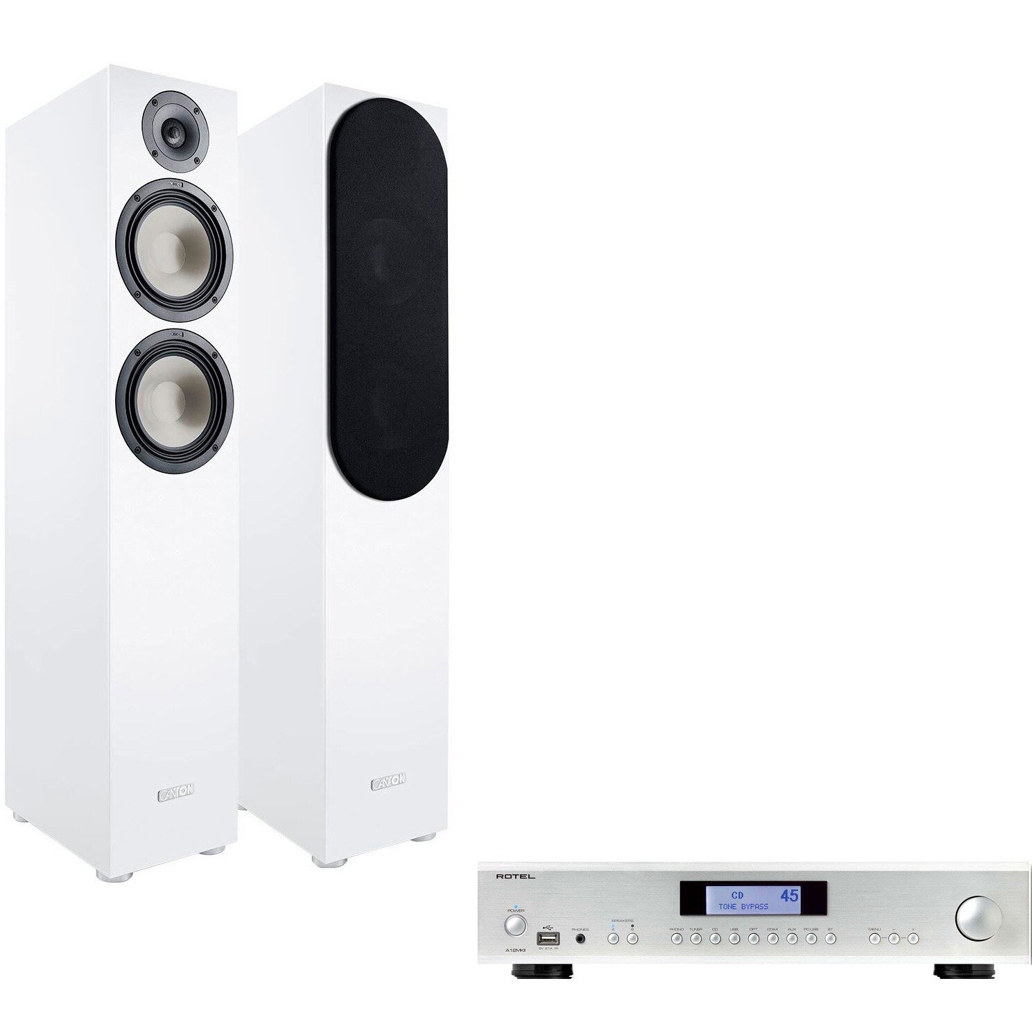Купить Комплект стерео системы - Rotel A12MKII Silver + Canton GLE 70 White