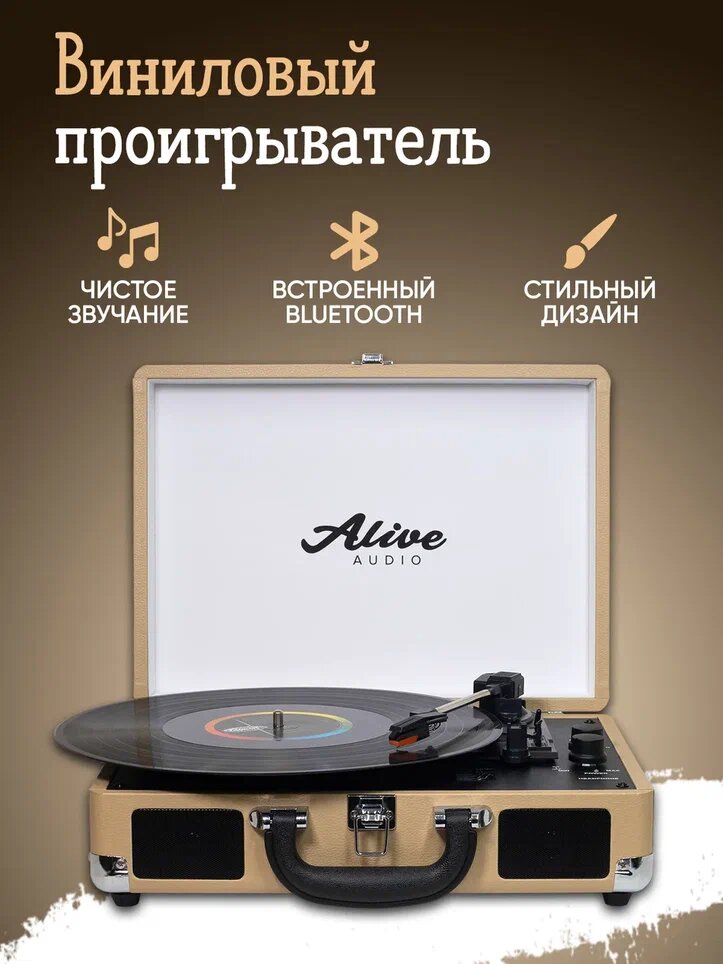 Купить Виниловый проигрыватель Alive Audio GLAM Latte c Bluetooth