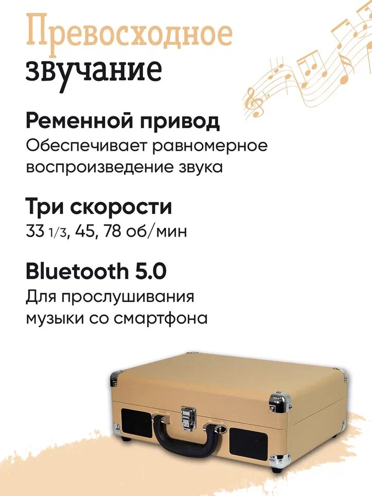 | Отзыв: | Отличный проигрыватель,очень хороший звук,внешняя сторона крышки сделана из очень приятного и износостойкого материала.Очень удобно,что можно подключить любое устройство по bluetooth
