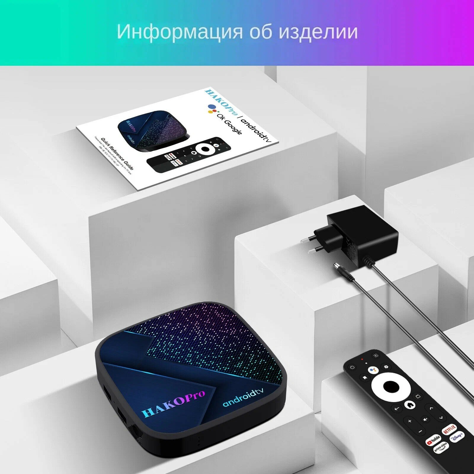 | Дополнительная информация | Комплектация: 1 x ТВ-ПРИСТАВКА HAKOPro S905Y4, 1 x пульт дистанционного управления BT, 1 x Блок Питания, 1 х HDMI кабель, 1 х Руководство пользователя (на английском языке) |