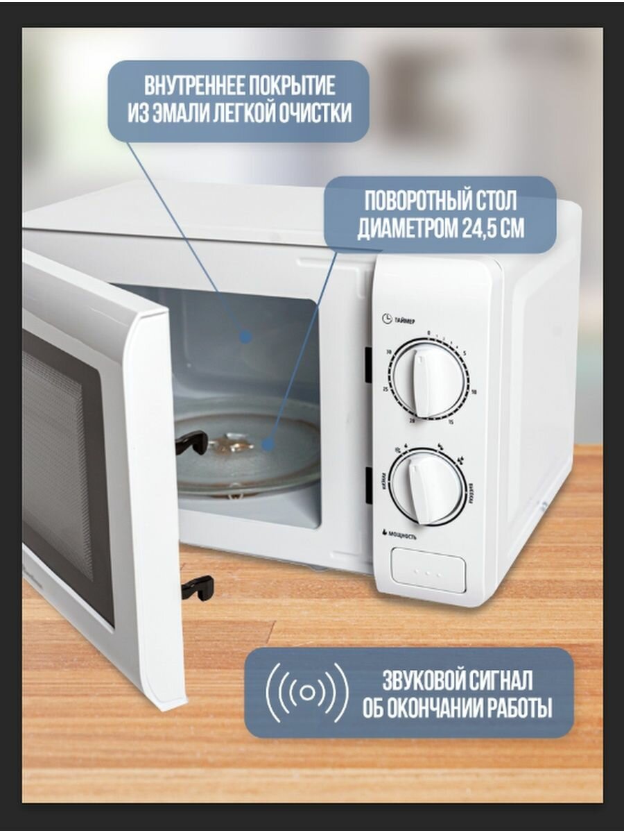 Микроволновая печь FS MWO D 20.10 WH, Сенсорное управление, 6 программ для приготовления, антипригарная эмаль, таймер, блокировка от детей.