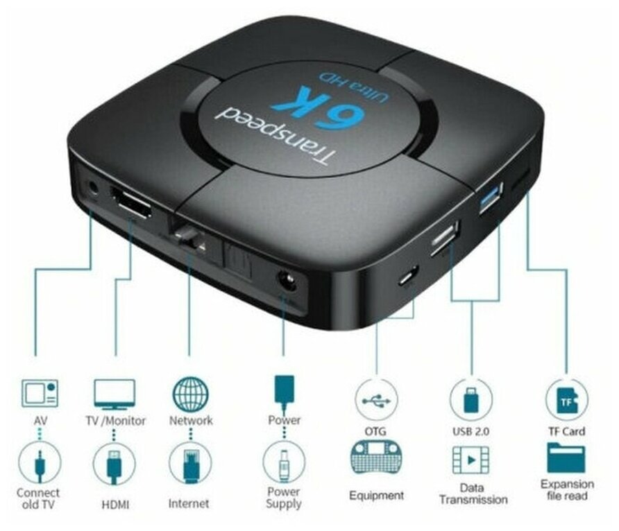 Смарт ТВ приставка, ТВ бокс Transpeed 6K (Андроид 10, 5G, 2/16 Гб) / TV BOX / Андроид / Cмарт приставка