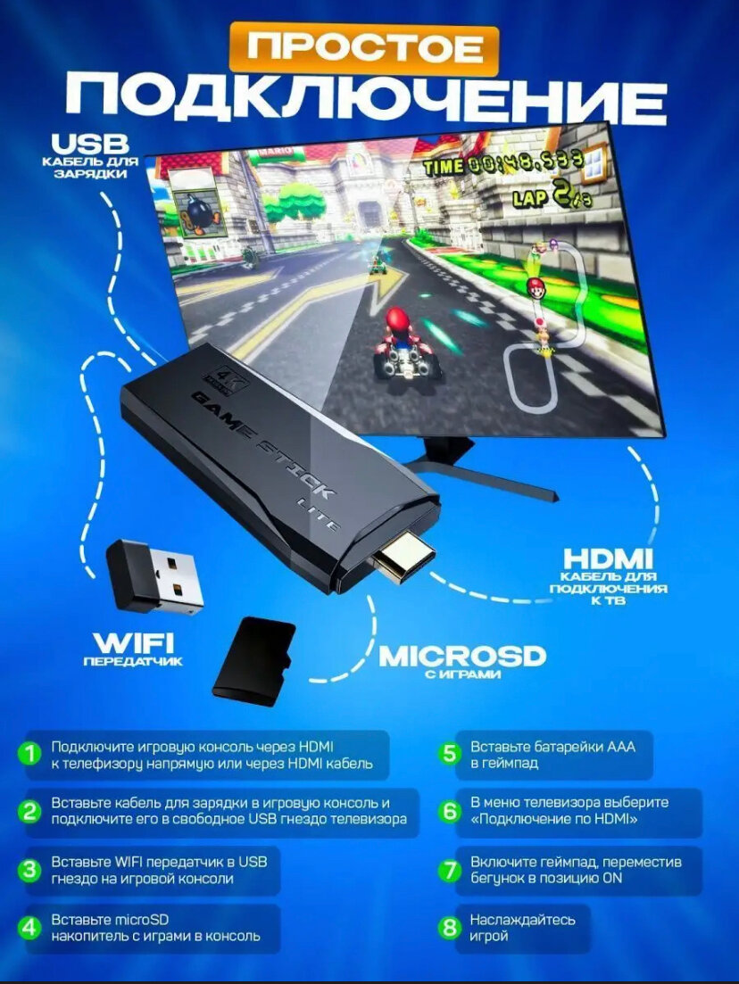 Портативная игровая приставка консоль для игр STICK Lite, 4К , 10 000+ игр, 8bit , 16bit, 32bit интересное: