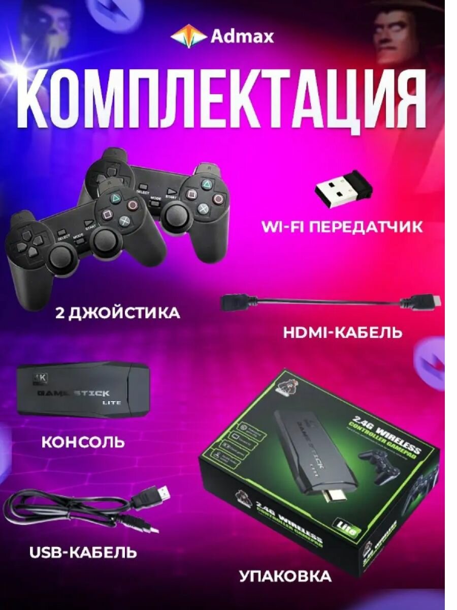Игровая консоль приставка для телевизора Game Stick Lite/ ТВ/ TV приставка, 20 000 игр