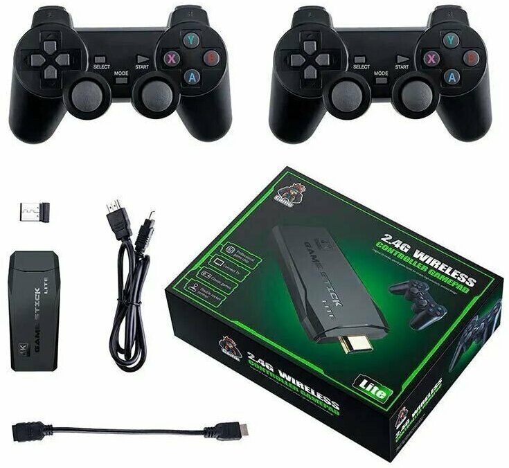 Игровая приставка, консоль Game Stick Lite 64Gb, 3555 игр, 4K, 2,4 ГГц, 8 бит, 16 бит, 32 бит