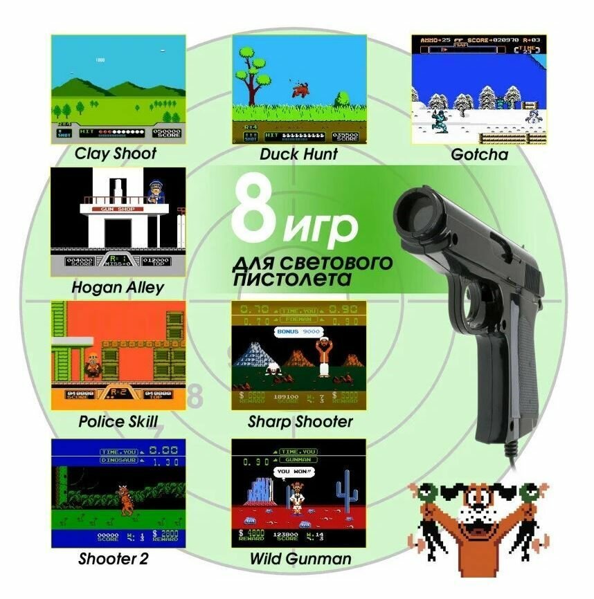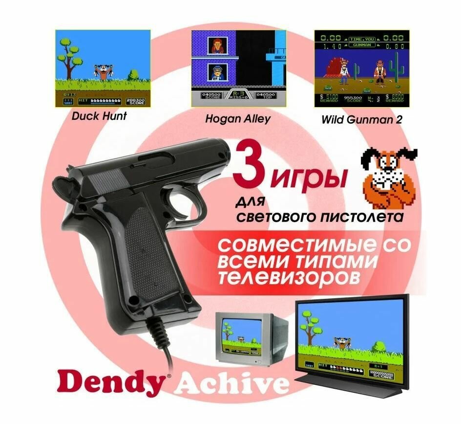 Игровая приставка Dendy Achive 640 встроенных игр со световым пистолетом черная интересное: