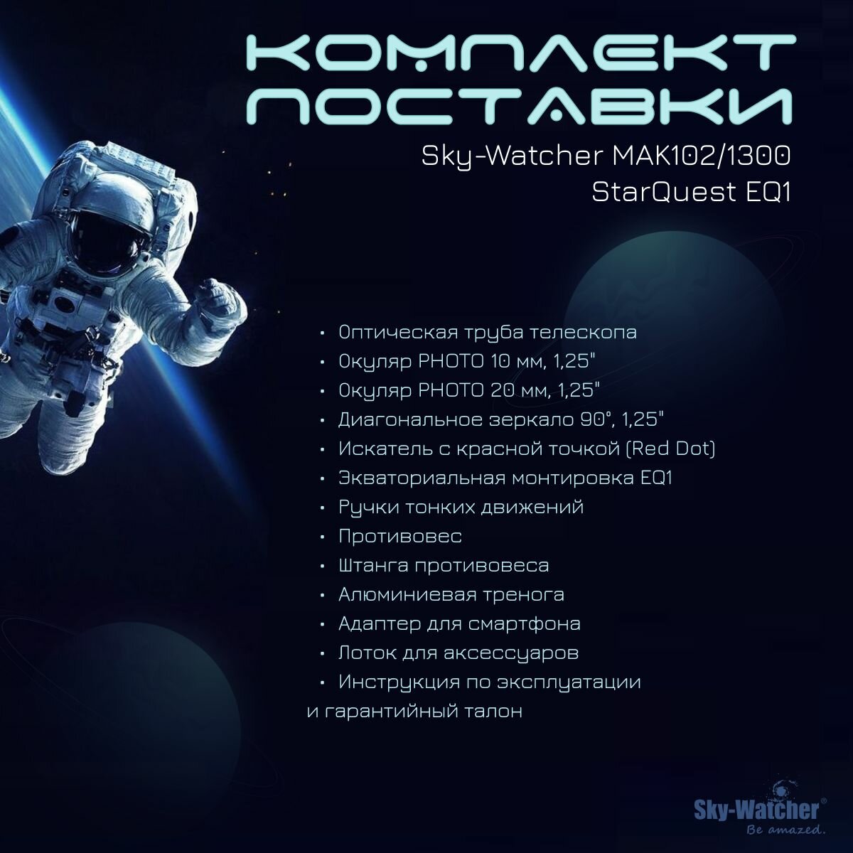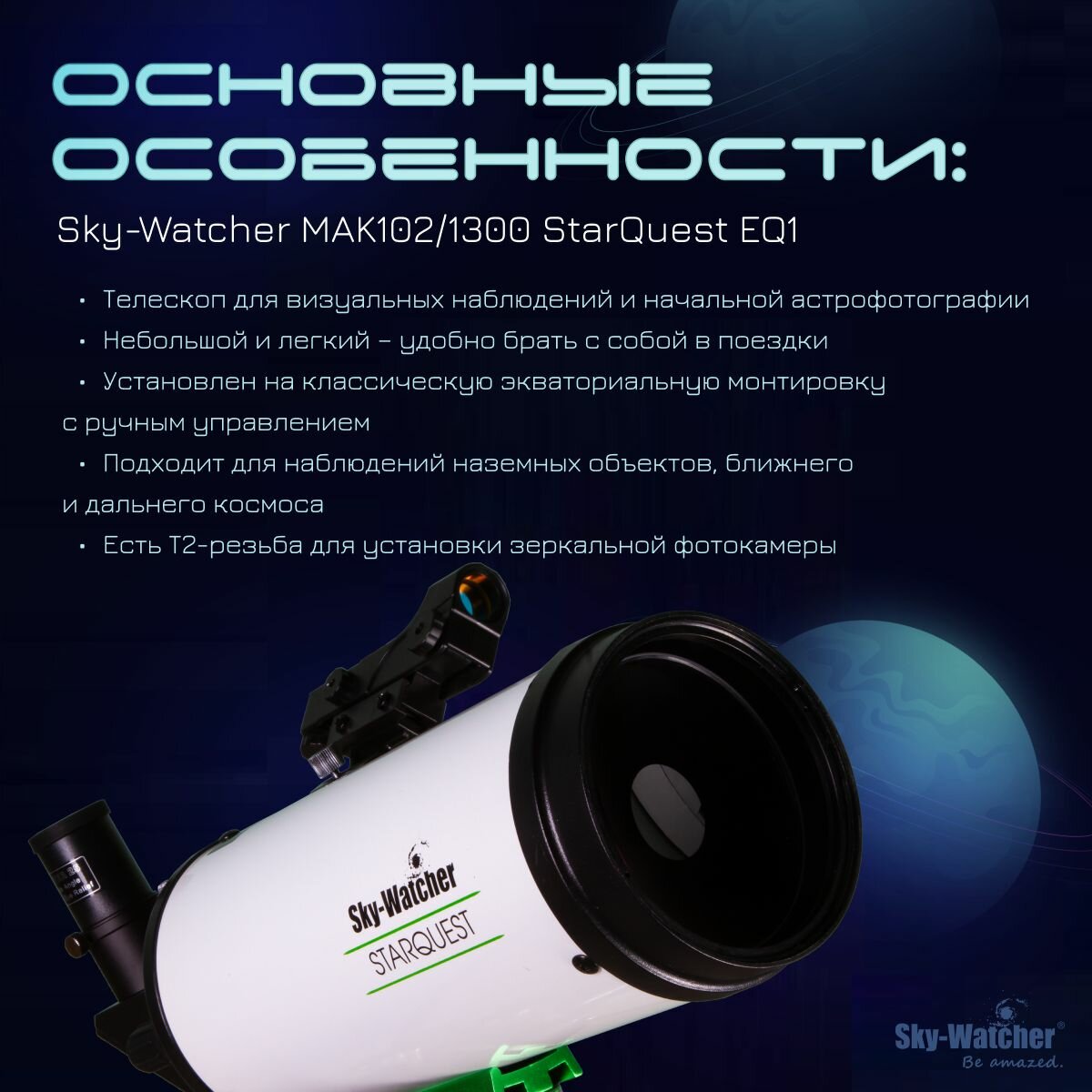 Телескоп Sky-Watcher MAK102/1300 StarQuest EQ1 интересное:
