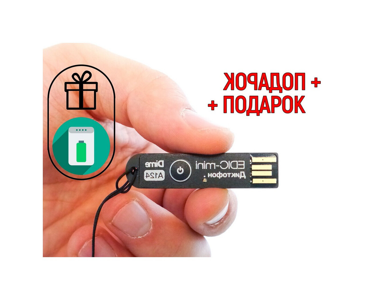 Купить Мини диктофон с аккумулятором Edic-mini A124 DIME (Y10883IDE) + подарок (Power-bank 10000 mAh) - запись по звуку и по расписанию - диктофон для запи