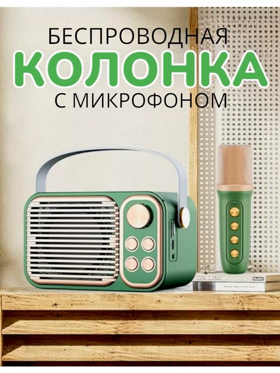 Портативный беспроводной микрофон Soundbox/ мини-колонка для караоке/ музыкальный плеер в стиле ретро с поддержкой TF-карты/Bluetooth-динамик/ AUX/ интересное: