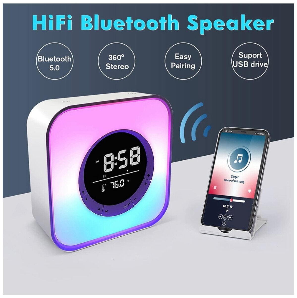 Многофункциональная дизайн-колонка Rapture-Q6A, Будильник, Ночник, Термометр, BT, Громкая связь, MicroSD, MP3, USB, AUX, RGB, Белая интересное: