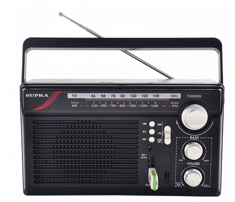 Радиоприемник SUPRA ST-19U, AM/FM/SW, USB, SD, черный