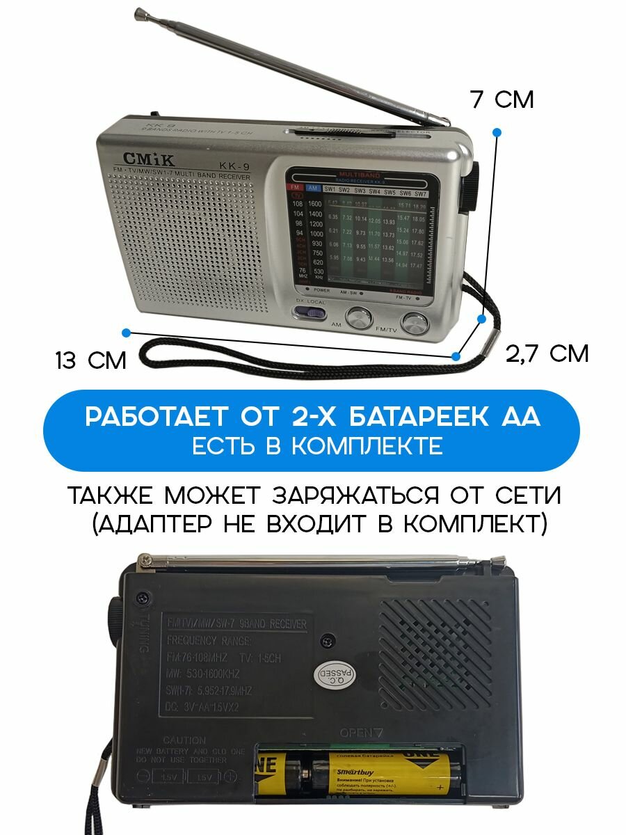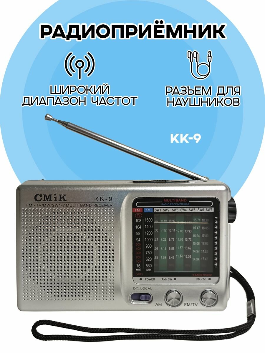 Радиоприёмник Cmik KK-9, переносной, FM/AM/СВ, цвет - серебристый