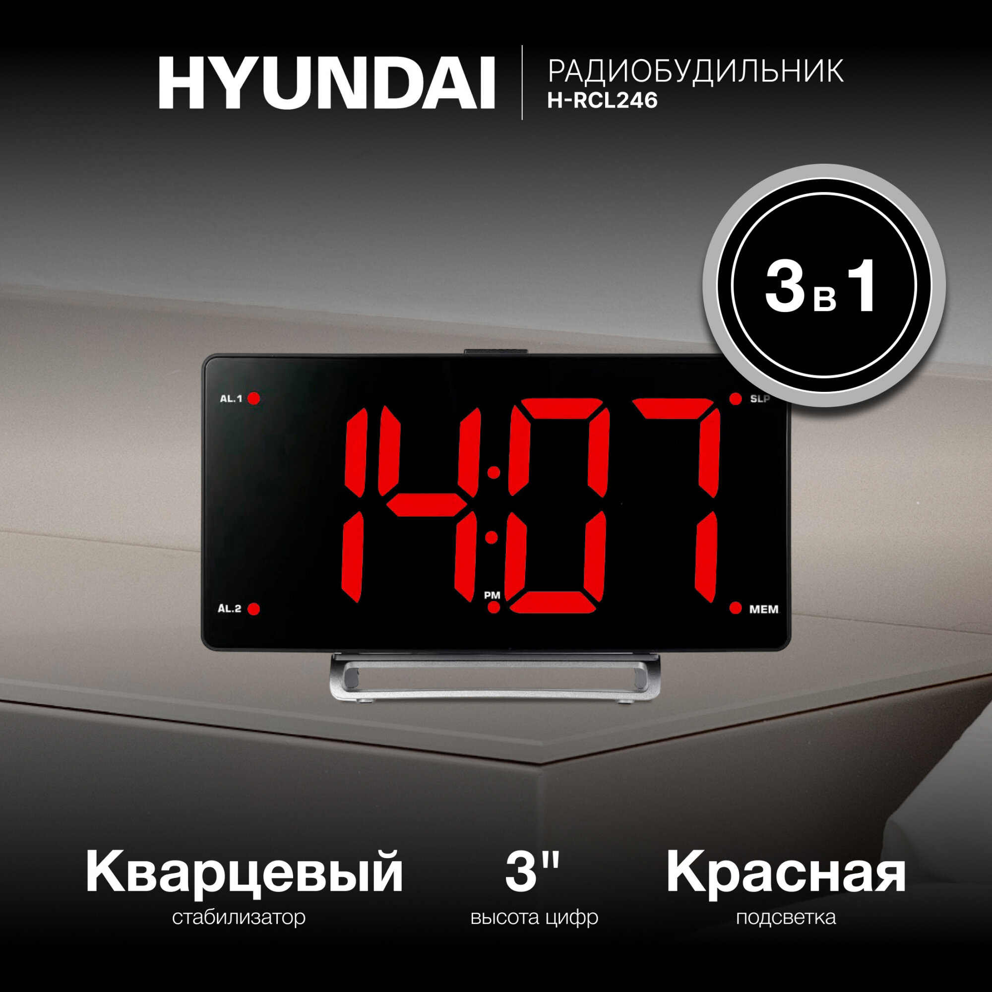 Радиобудильник Hyundai H-RCL246 черный LCD подсв:красная часы:цифровые FM интересное: