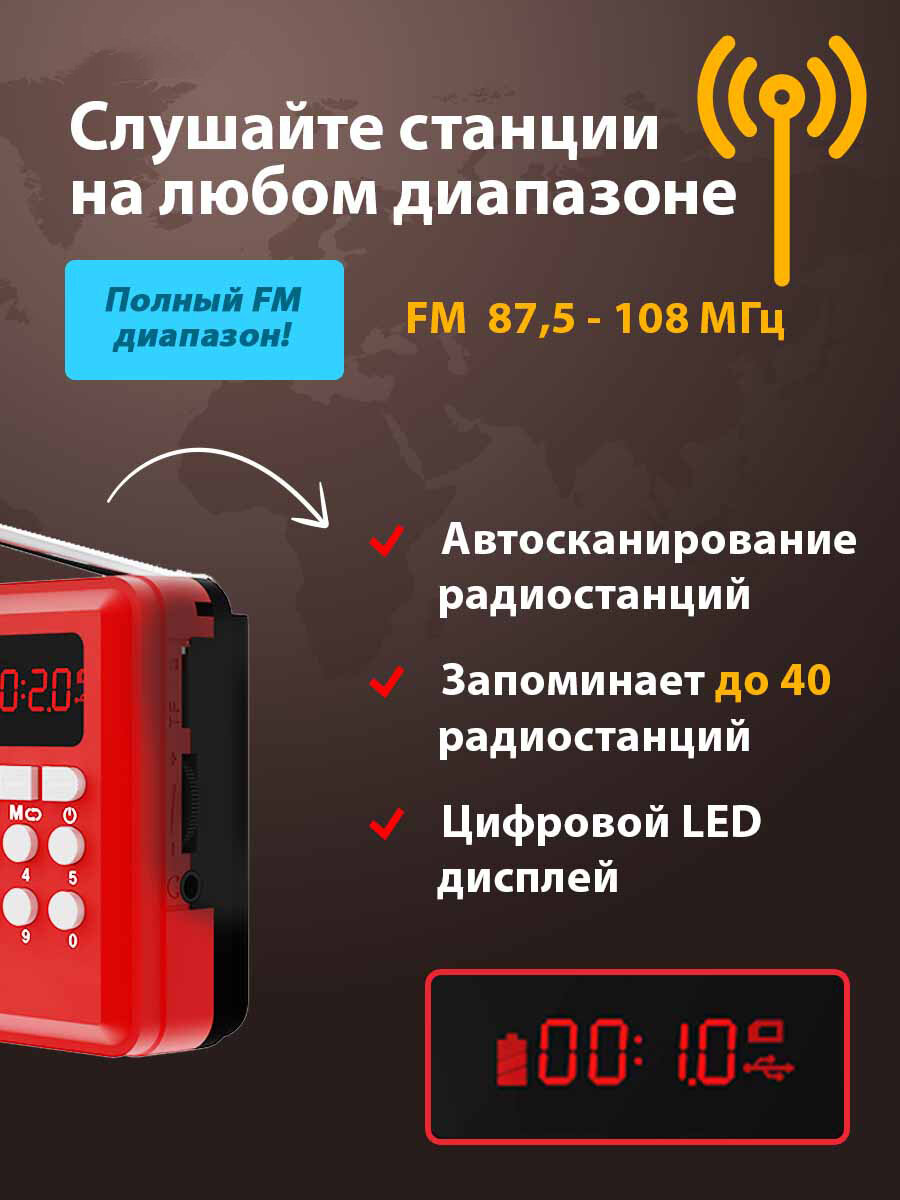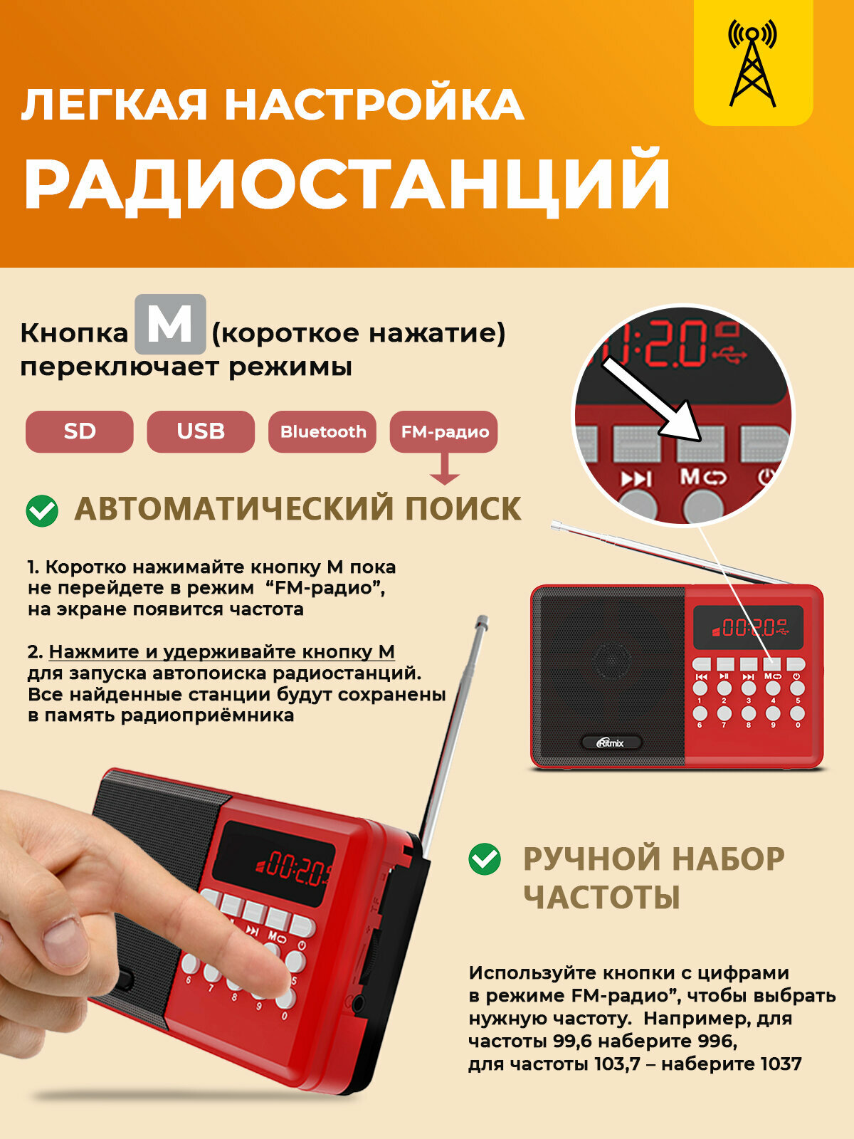 Радиоприемник Ritmix RPR-002 usb, microSD,87,5-108 МГц , встроеный акумулятор интересное: