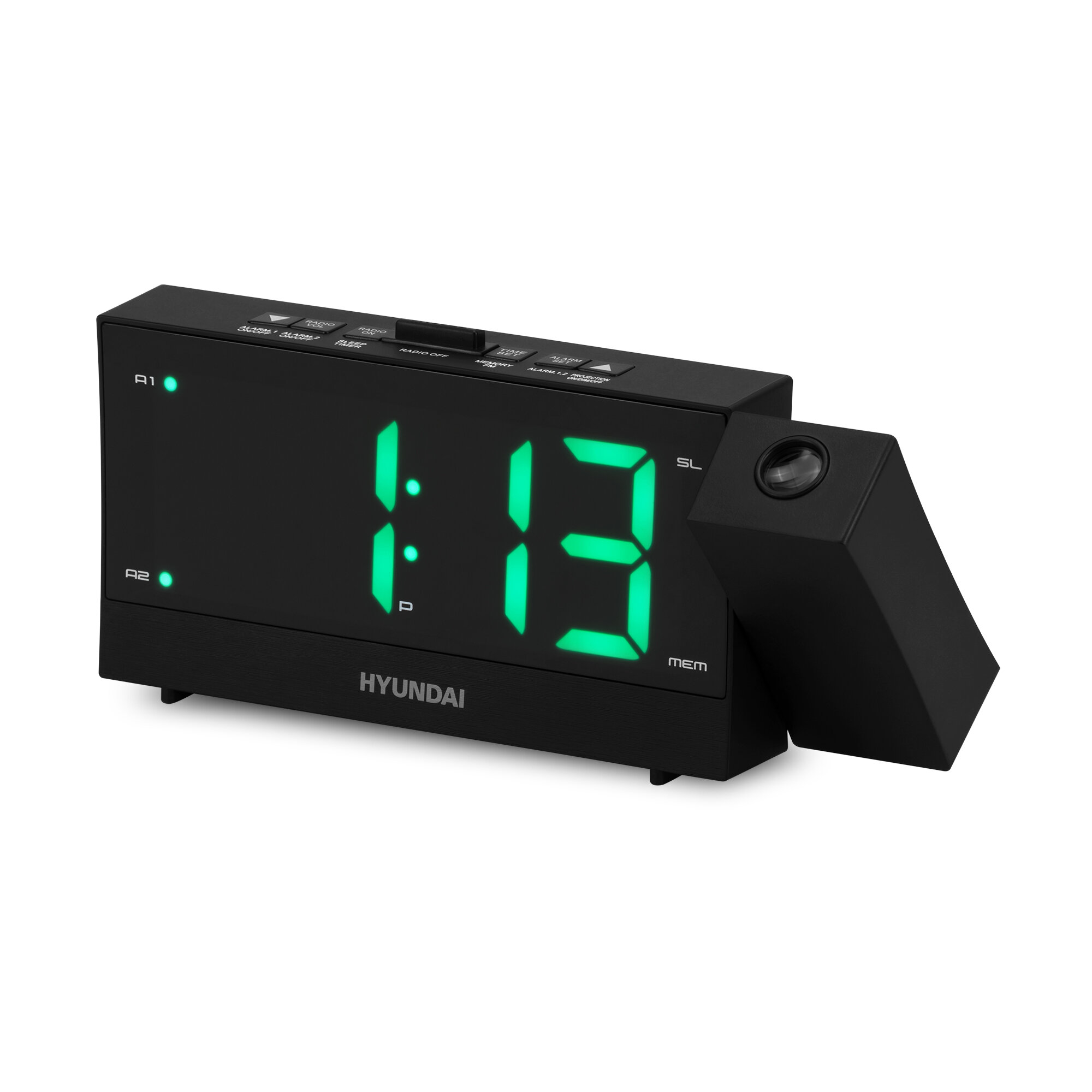 Купить Радиобудильник Hyundai H-RCL243 черный LCD проек.изоб. подсв:зеленая часы:цифровые FM