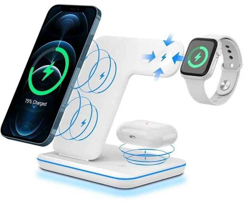 Ниже Вы можете прочитать отзывы на Беспроводная зарядная Док Станция 3 в 1 для портативной зарядки телефонов, умных смарт часов и наушников (белый), ознакомится с подробными характеристиками, посмотреть интересные обзоры и фотографии на Беспроводная зарядная Док Станция 3 в 1 для портативной зарядки телефонов, умных смарт часов и наушников (белый).