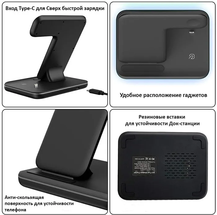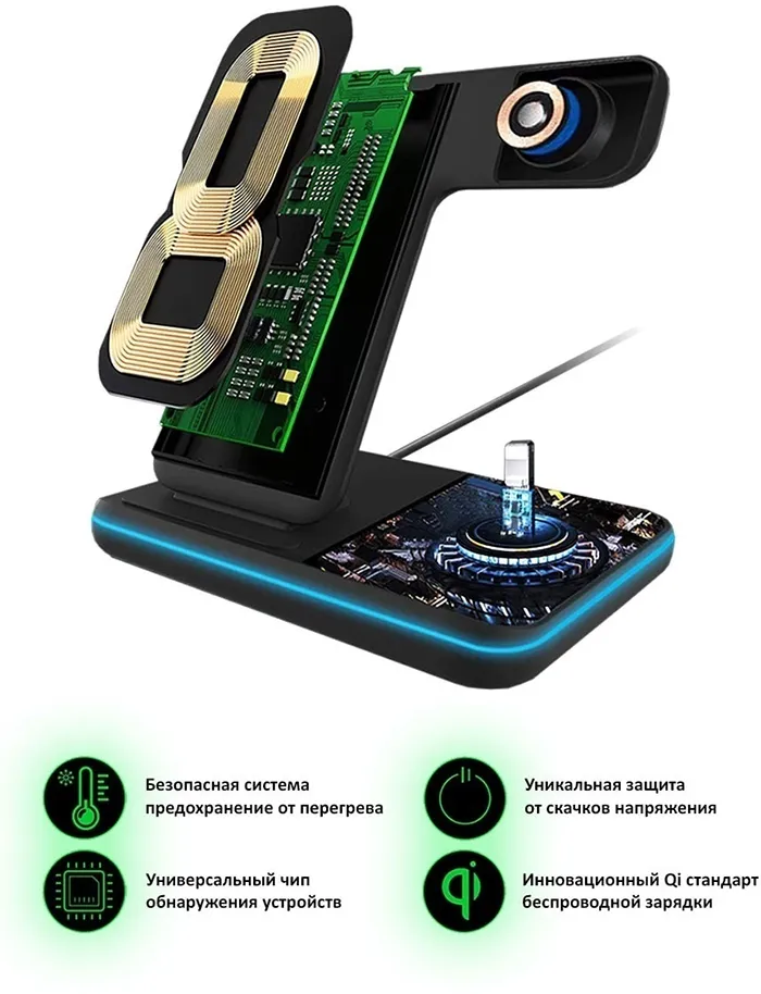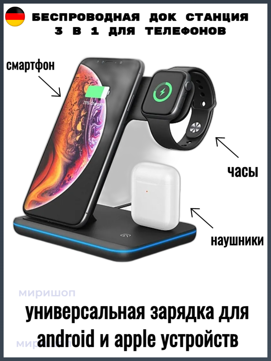 Беспроводная док станция 3 в 1 для телефонов и умных смарт часов / Зарядка для iPhone, Samsung и Android интересное: