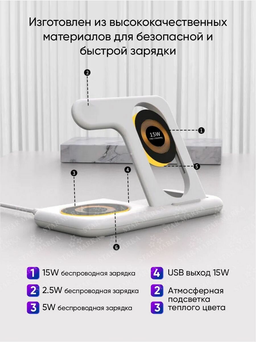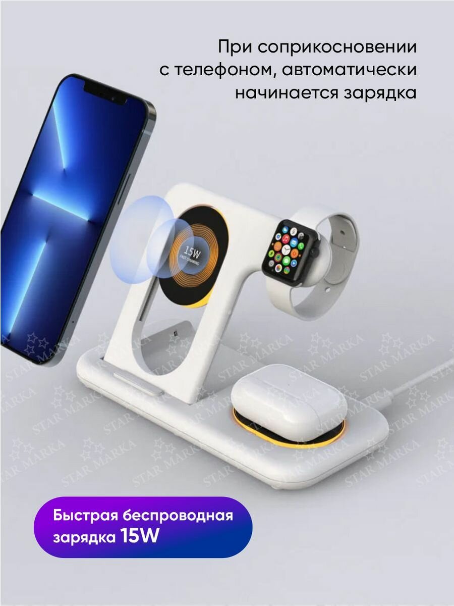 Беспроводная зарядная Док-станция 4 в 1 интересное: