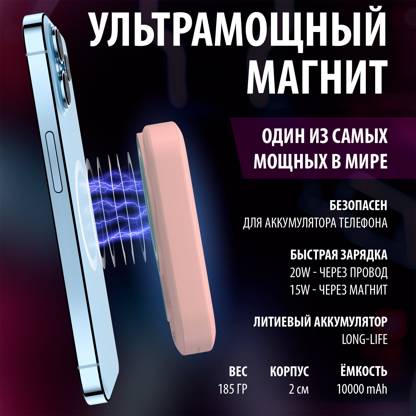 | Плюсы: | заряжает 14 pro max примерно на 50%, быстро и удобно. магнит крепкий, софт тач покрытие приятное |