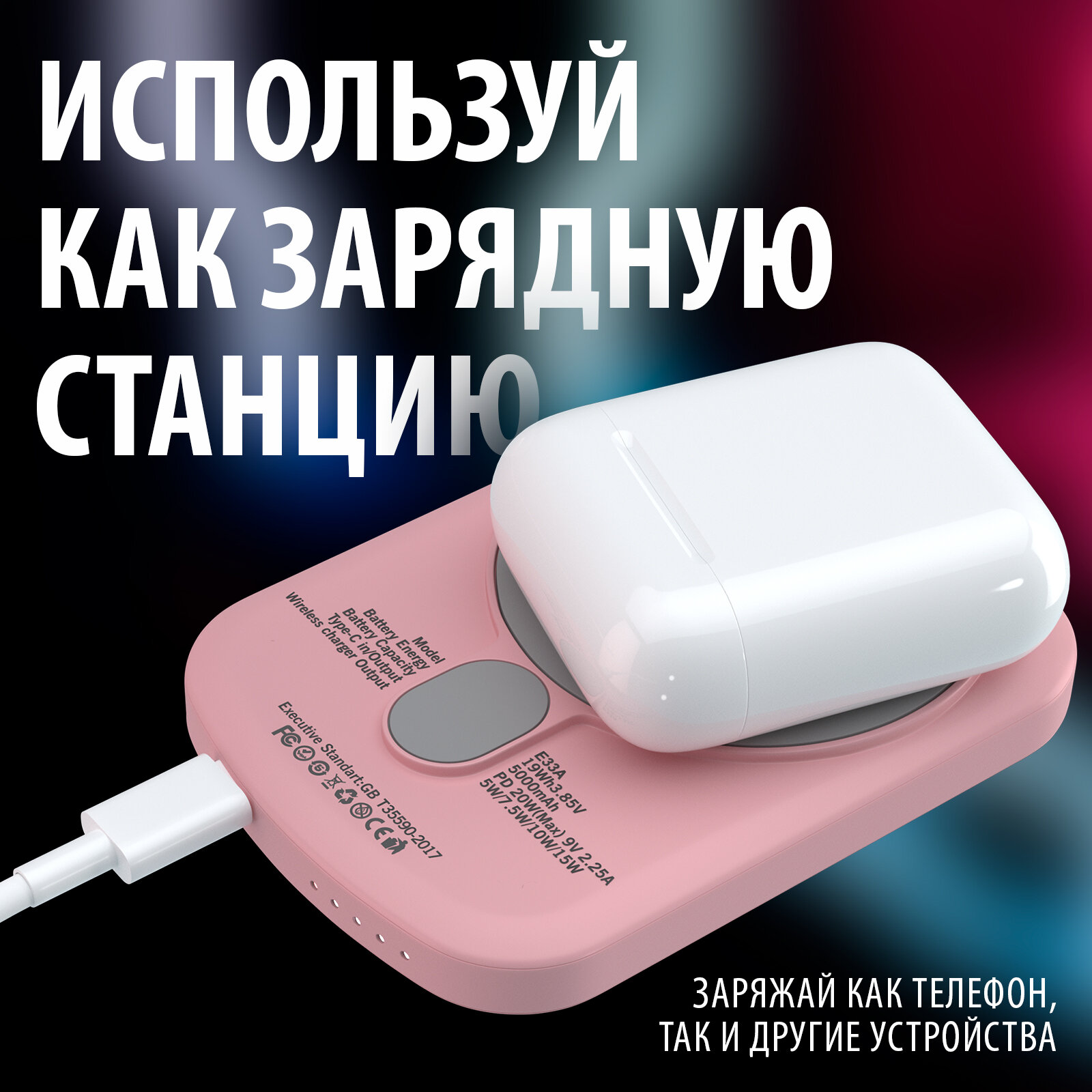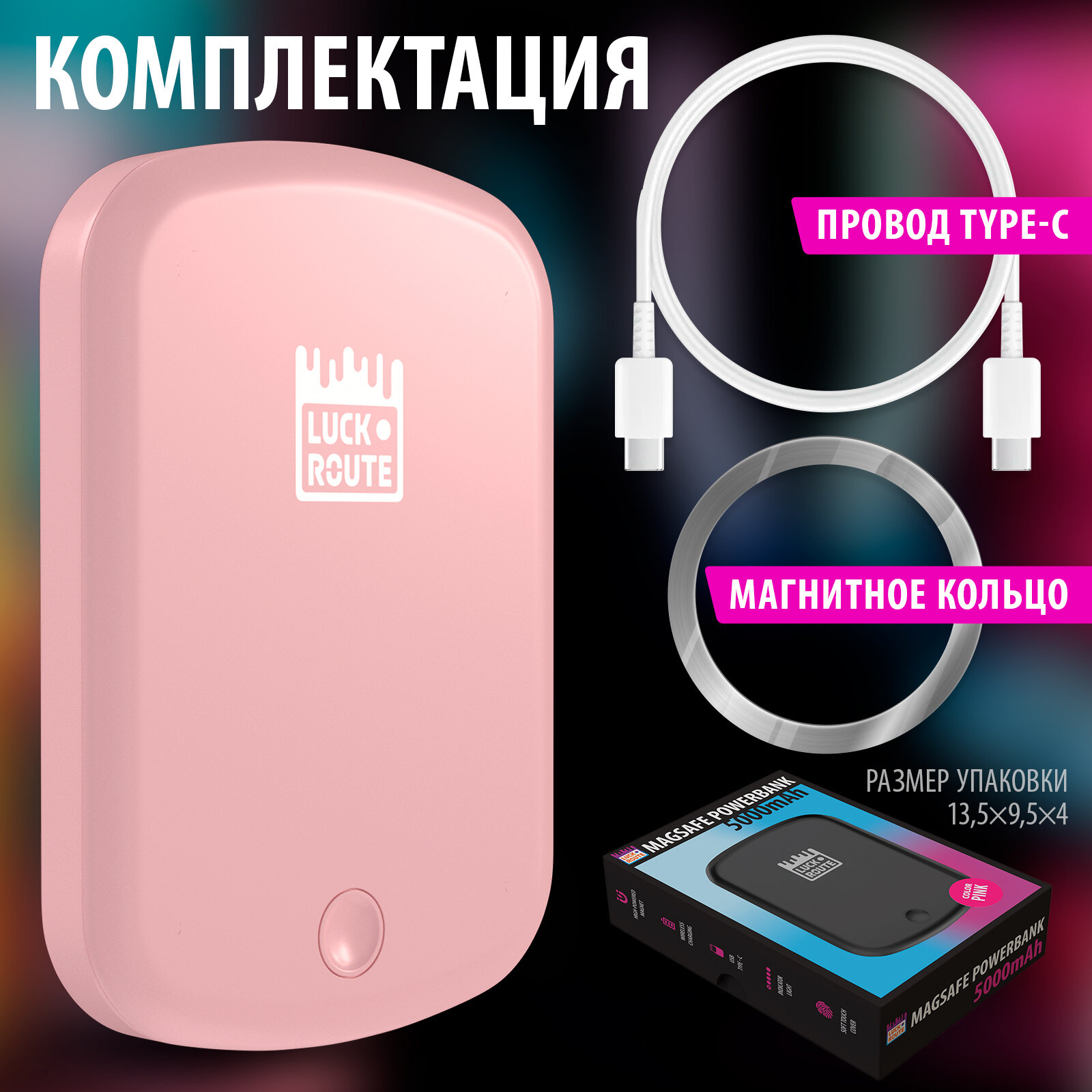 Внешний аккумулятор Luckroute MagSafe Power Bank 5000 mAh для iPhone, розовый интересное: