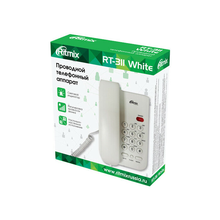 Телефон RITMIX RT-311 white, световая индикация звонка, тональный/импульсный режим, повтор, белый, 80002232, 263159