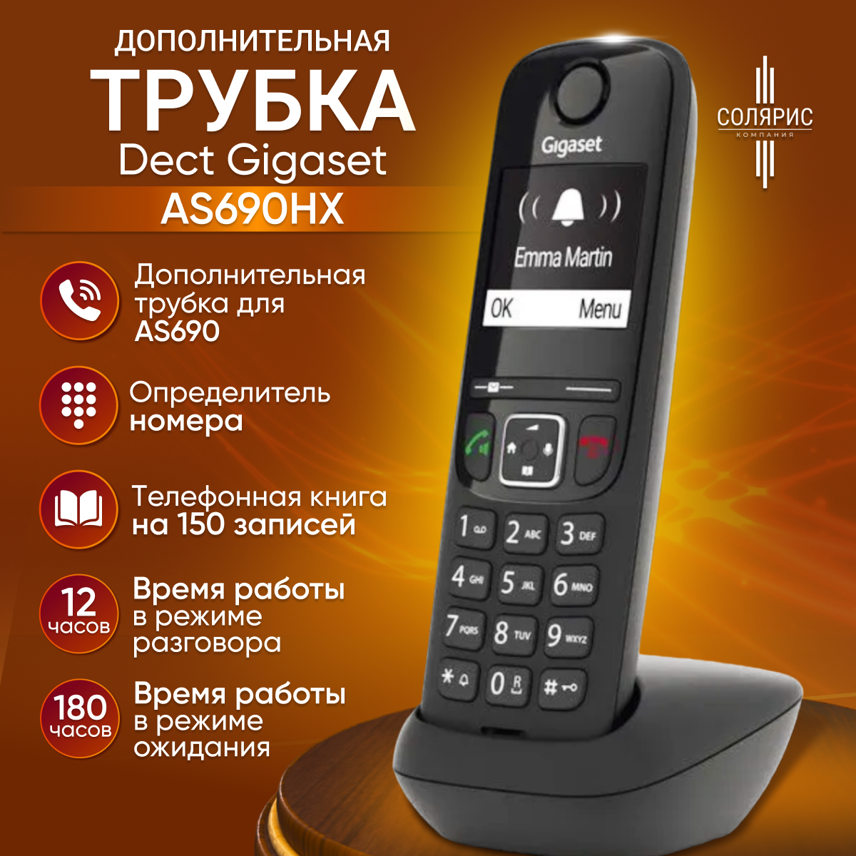 Трубка Gigaset доп. Dect AS690HX черный для AS690