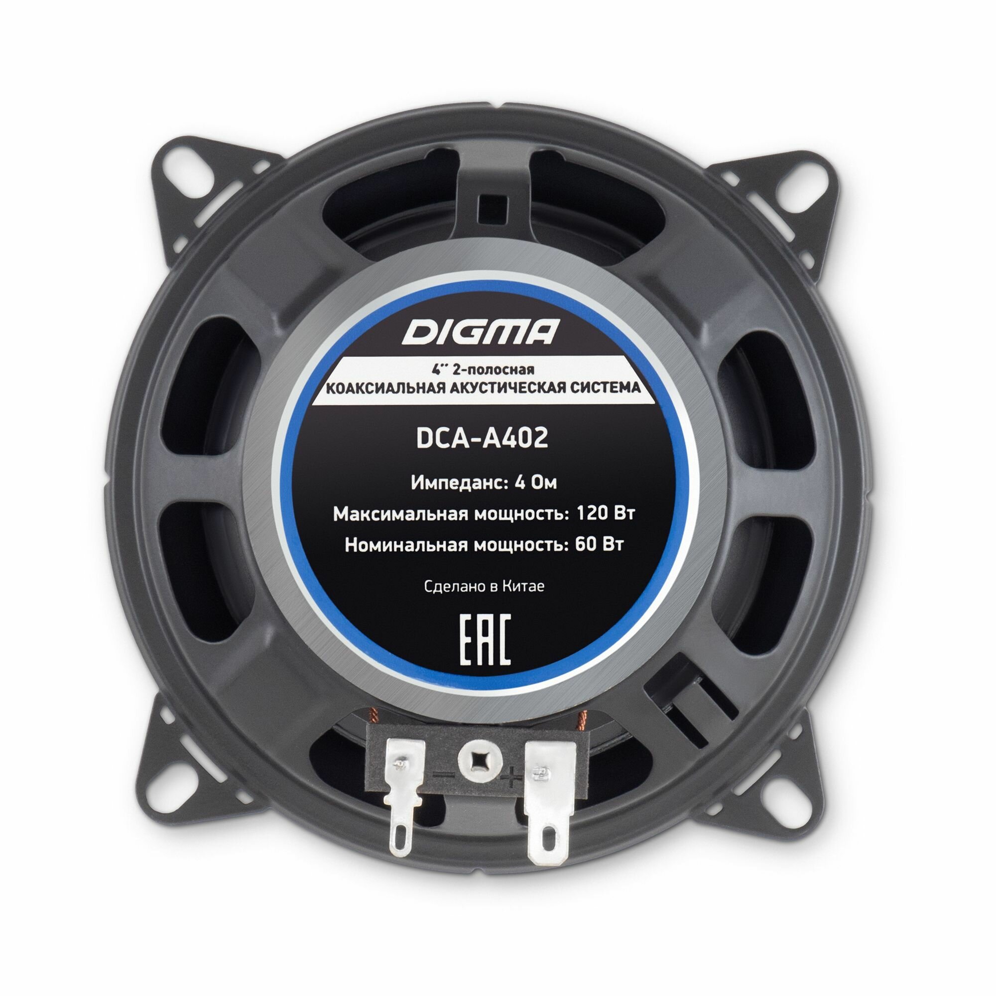 Колонки автомобильные Digma DCA-A402 (без решетки) 120Вт 90дБ 4Ом 10см (4дюйм) (ком.:2кол.) коаксиал