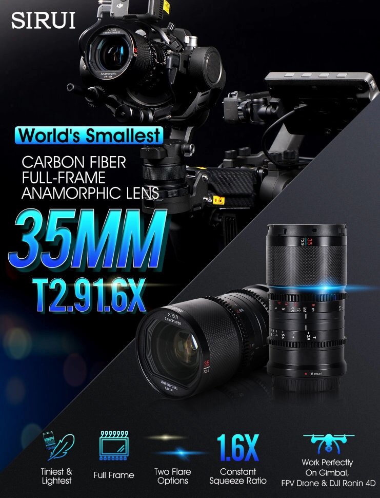 Объектив Sirui Saturn 35mm T2.9 1.6x FF Anamorphic L-mount (Blue Flare) Saturn L35B интересное: