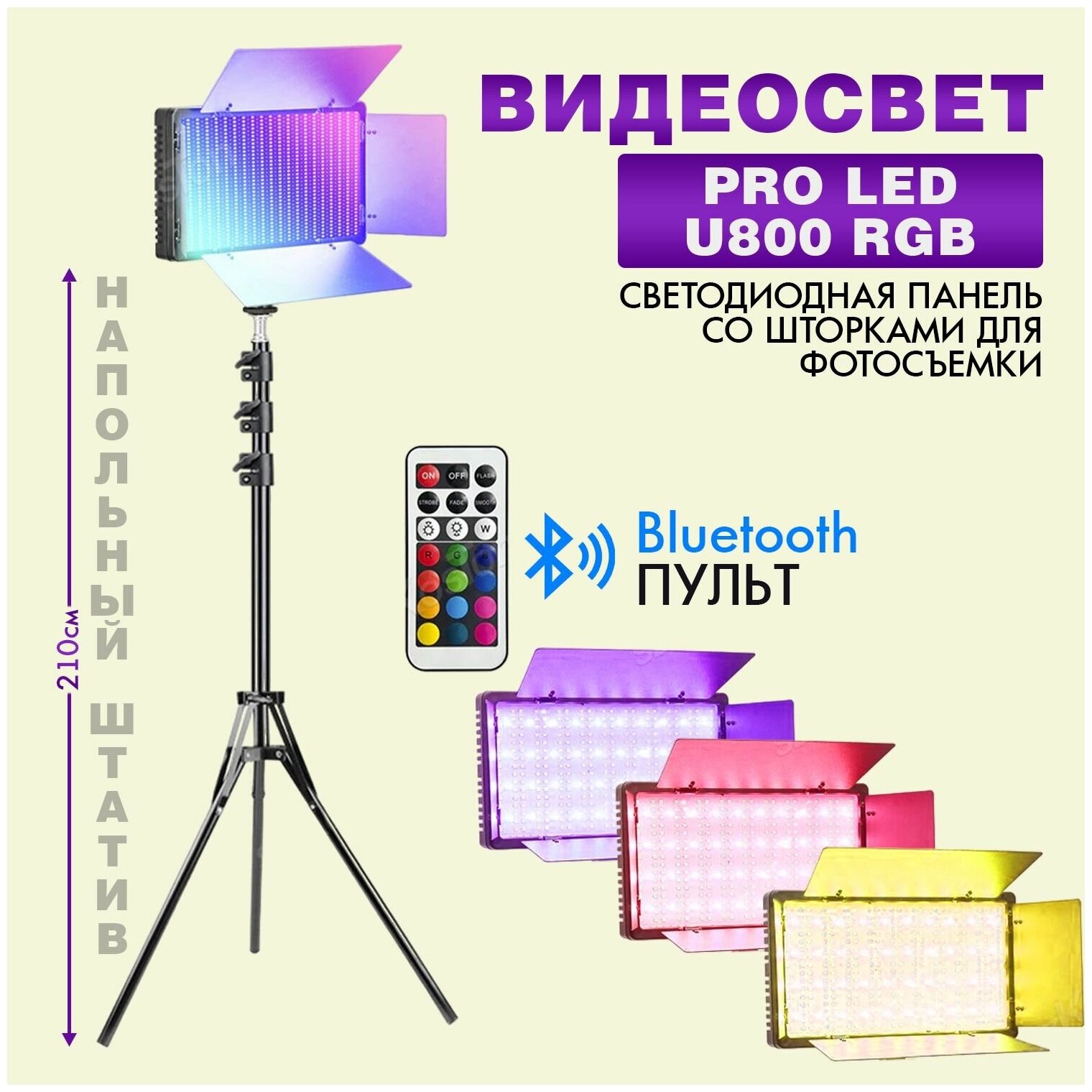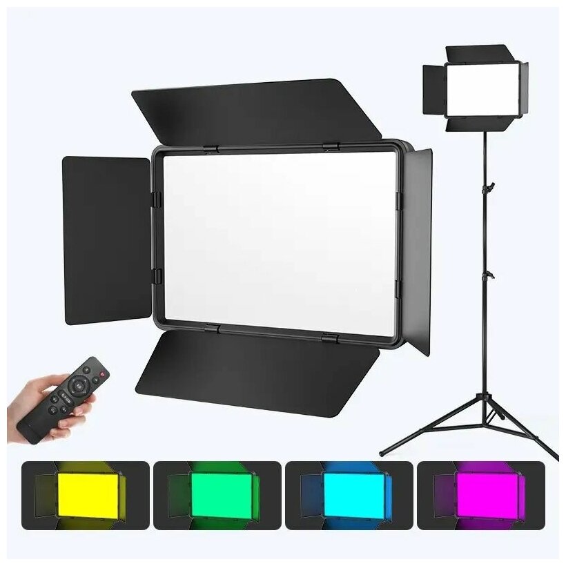 Видеосвет PRO LED U800 RGB c напольным штативом (210см), блоком питания 2м и Bluetooth пультом /светодиодная панель со шторками для фотосъемки интересное: