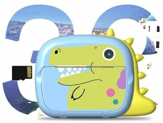 Детский фотоаппарат мгновенной, моментальной печати фото, Wi-Fi Динозаврик/полароид +CD карта 32GB (Розовый) интересное: