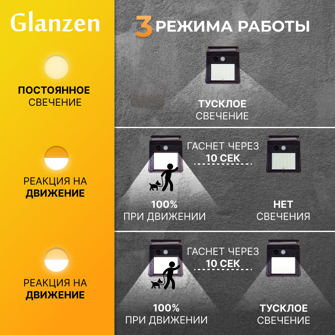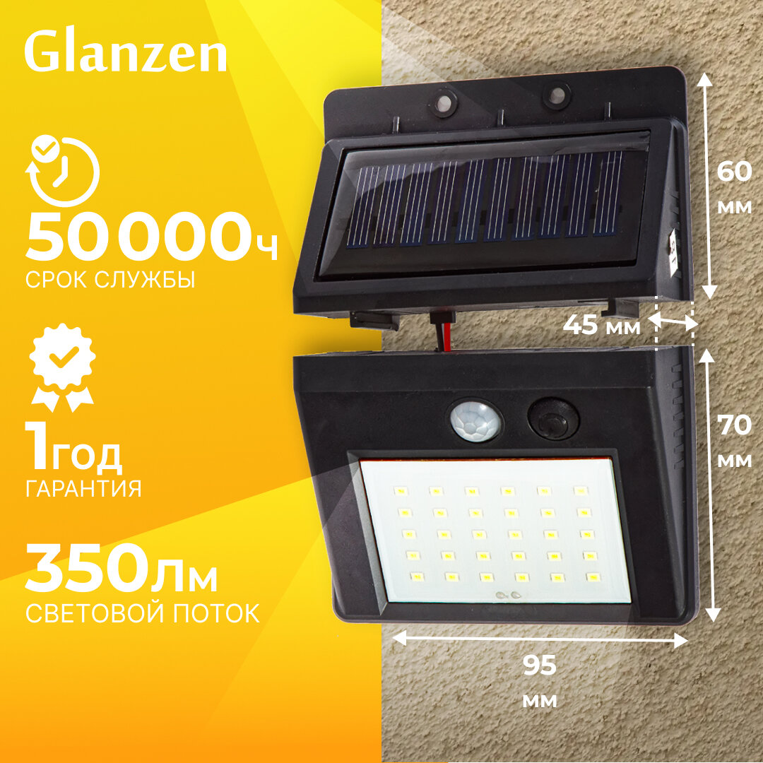 GLANZEN Светодиодный прожектор на солнечных батареях и датчиком движения FAD-0003-4-solar КА-00008358