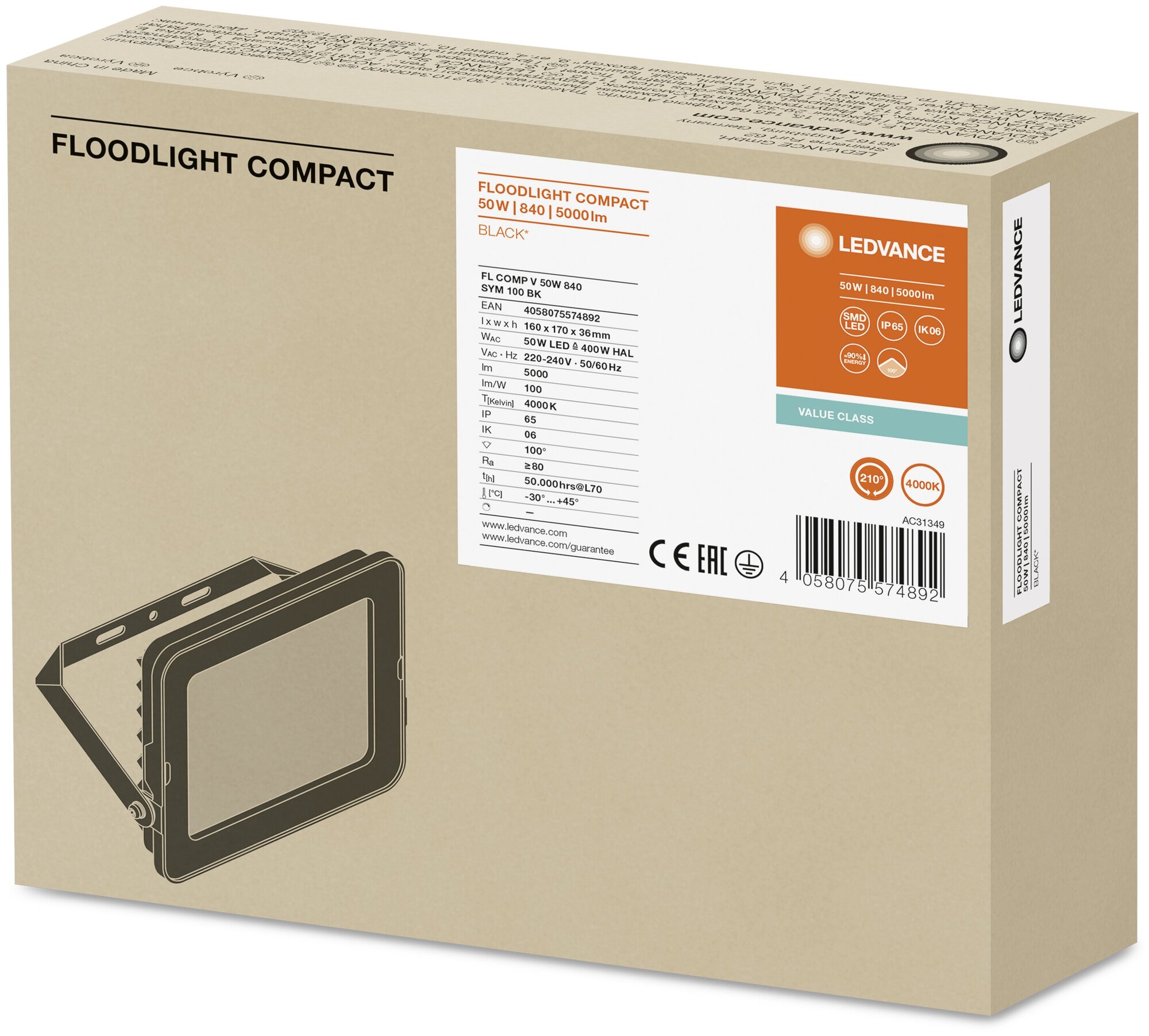 FL COMP V 50W 840 SYM 100 BK - LED прожектор LEDVANCE интересное: