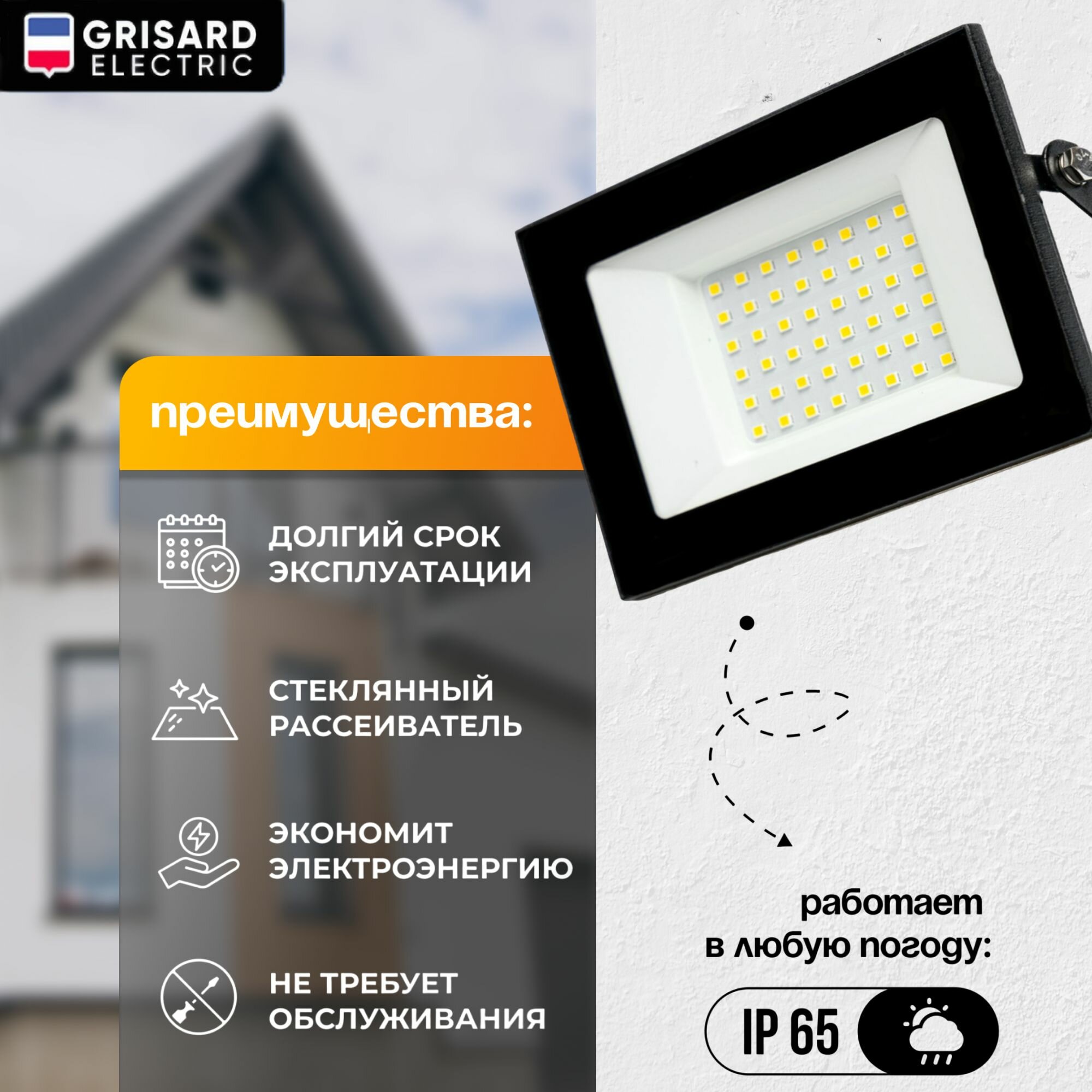 Grisard Electric прожектор уличный сдо 50 светодиодный черный ip65 6500 k GRE-004-0002 .