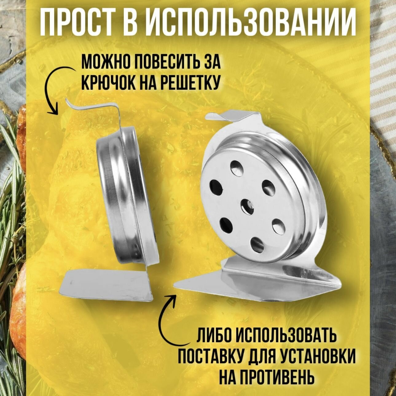 | Отзыв: | Удобен в установке, можно повесить на решетку или поставить на противень. |