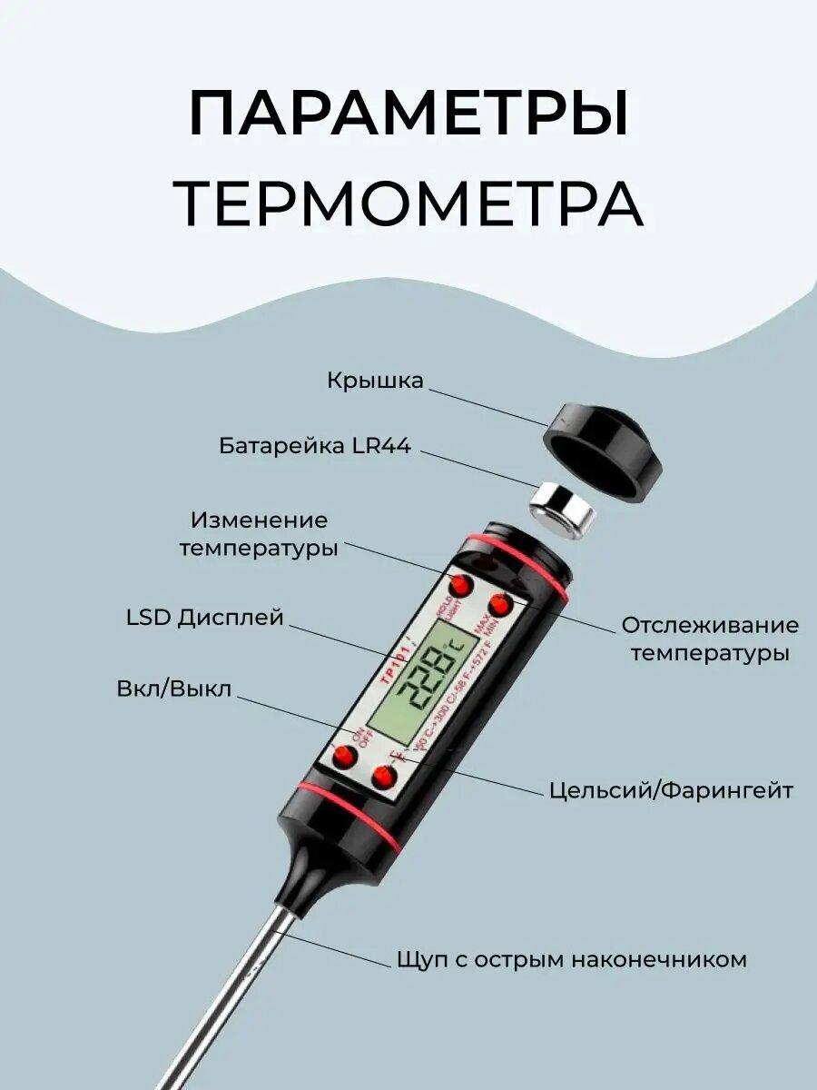 Кулинарный электронный термометр с щупом для воды кухонный интересное: