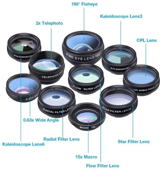 Универсальный набор объективов и фильтров для смартфонов 10-в-1 на прищепке Fotorox FR10 интересное: