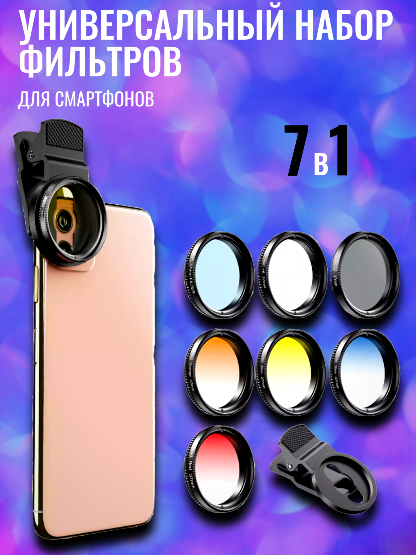 Купить Универсальный набор фильтров для смартфонов 7-в-1 на прищепке Fotorox FR7