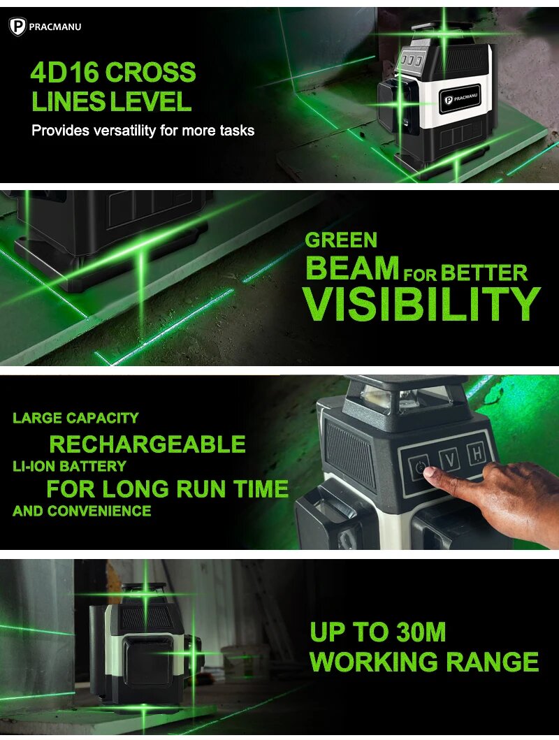 Лазерный уровень/нивелир PRACMANU MINI 16 Линий, Зеленый луч интересное: