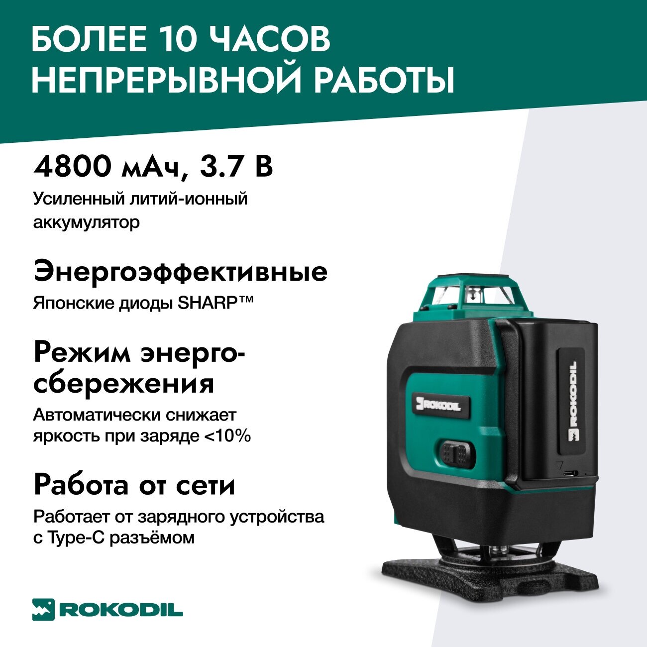 Лазерный уровень 4D Rokodil Ray Max, нивелир лазерный самовыравнивающийся, зеленый луч, 16 линий на 360 градусов, строительный инструмент интересное: