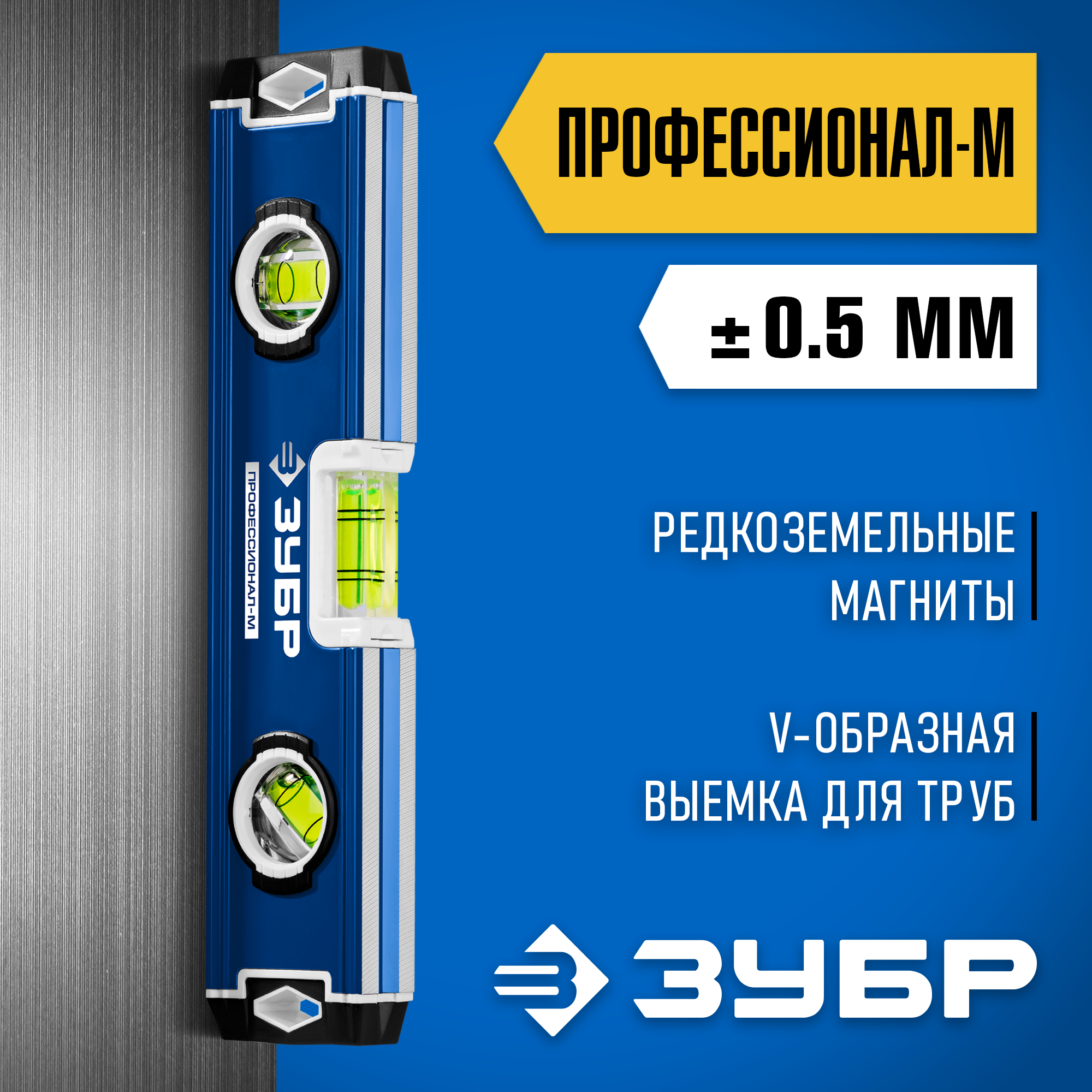 Купить Компактный усиленный магнитный уровень ЗУБР 230 мм Профессионал-М (34581-023)