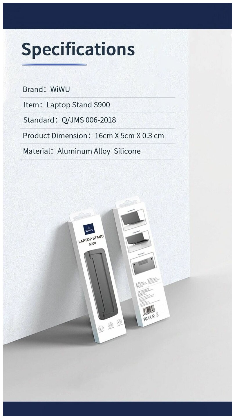 Подставка для ноутбука WiWU S900 регулируемая, складная для ноутбуков от 11.6 до 17 дюймов - Серый интересное: