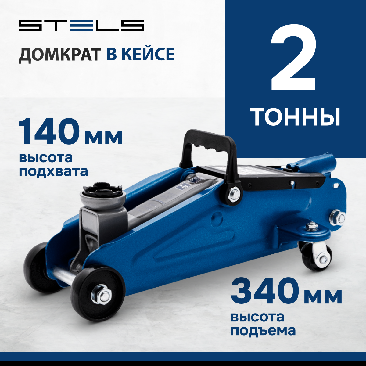 Домкрат гидравлический подкатной Stels 2 т, h подъема 140-340 мм, в кейсе 51128