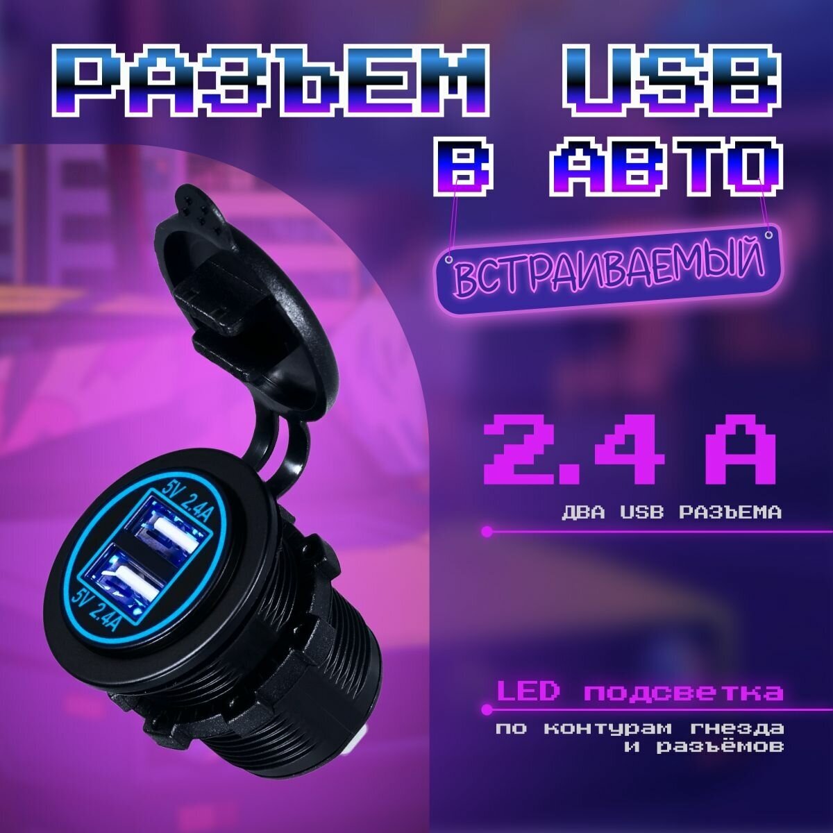 MELT Разъем USB врезной, круглый в авто 12V-24V 2USB 4.8A интересное: