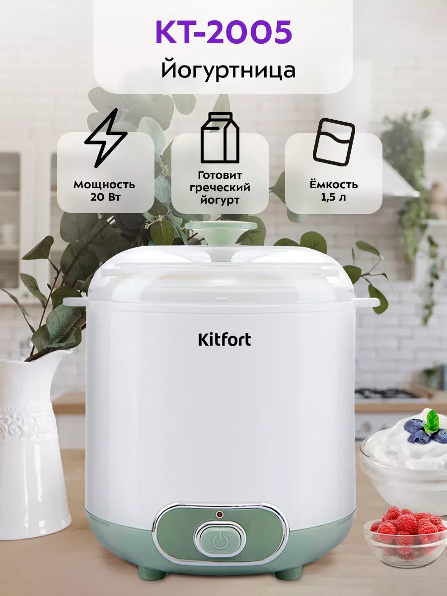 Йогуртница Kitfort КТ-6038, 20 Вт, 200 мл, 4 ёмкости, стекло, белая