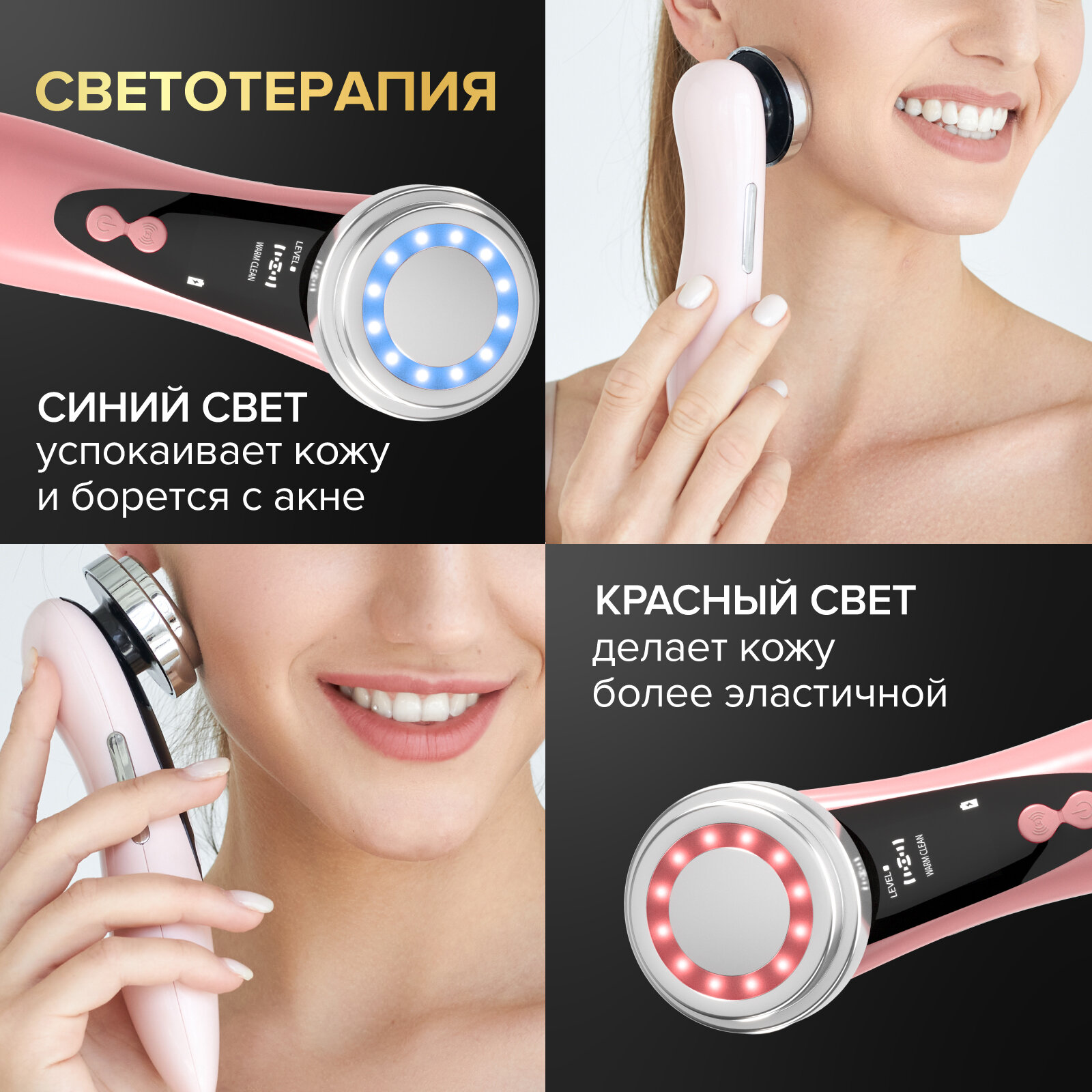 Лифтинг аппарат для лица 4 в 1, Evo Beauty аппарат для мезотерапии. Массажер для лица, шеи. LED терапия (светотерапия).